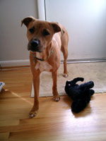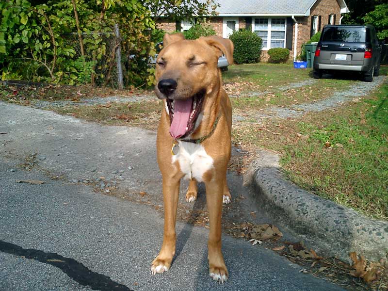This is Alva approaching 9 months. She is protecting her territory and showing off her nice teeth.
